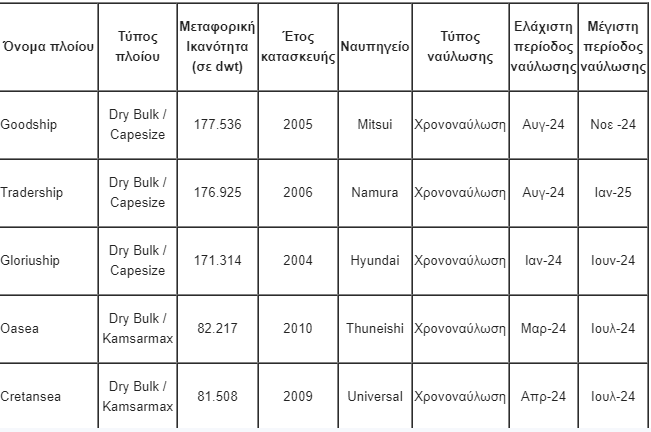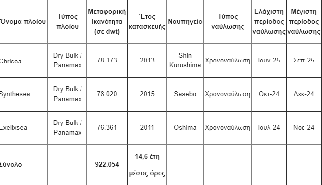 Η περιορισμένη προσφορά πλοίων έχει πρόσφατα οξυνθεί από τις γεωπολιτικές αναταραχές που συνδέονται με τις εντάσεις στην Ερυθρά Θάλασσα, καθώς και, αναφορικά με τα Panamax, την χαμηλή στάθμη νερού στη Διώρυγα του Παναμά. Σε συνδυασμό με την ευνοϊκή δυναμική της μεταφορικής ζήτησης, αναμένουμε μια εύρωστη αγορά καθ’ όλη τη διάρκεια του έτους. Παραμένουμε λοιπόν αισιόδοξοι για τις οικονομικές μας επιδόσεις το 2024, εκμεταλλευόμενοι πλήρως έναν στόλο τριών Capesize, τριών Kamsarmax και τριών Panamax».