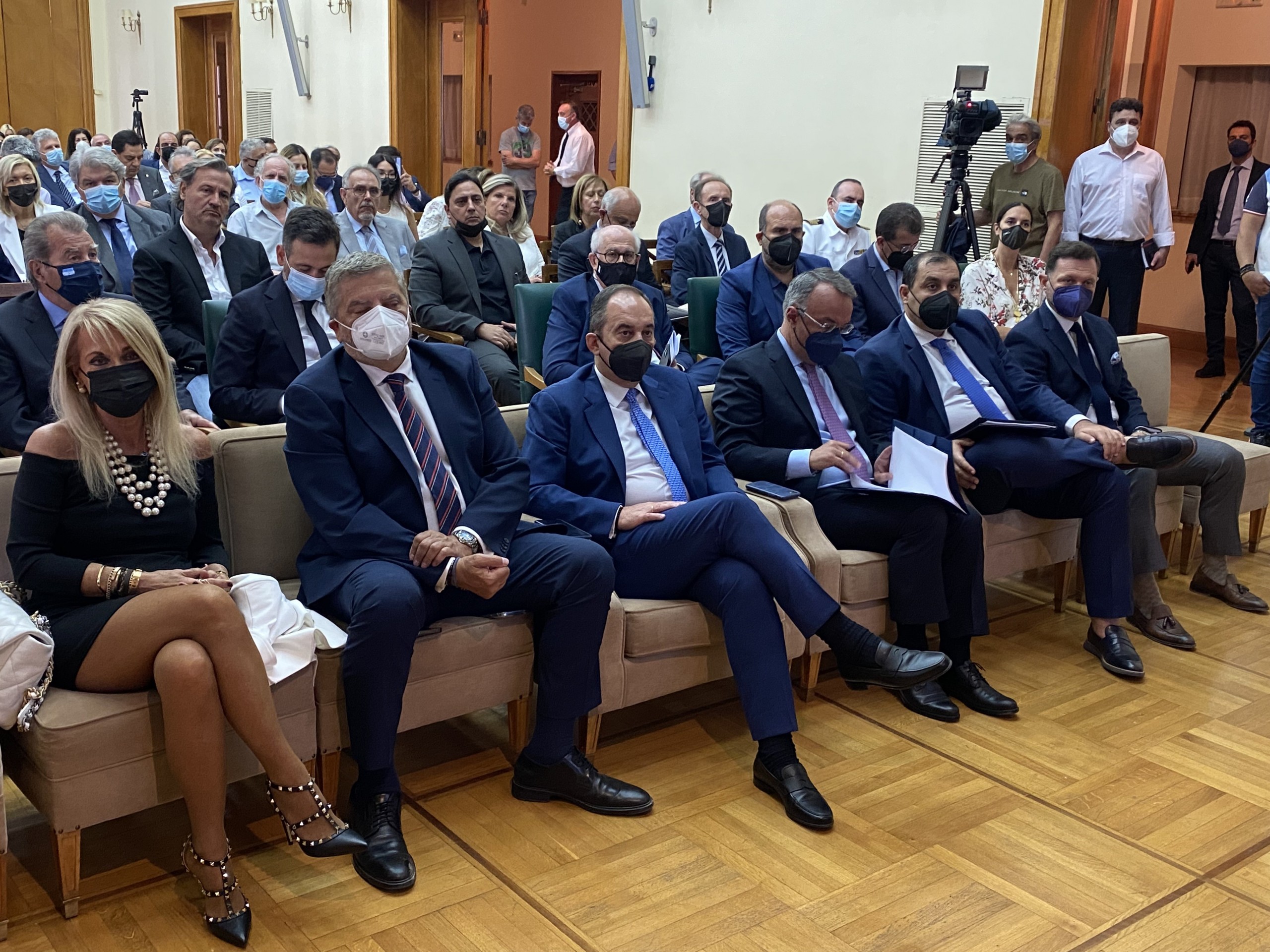 Τέλος, οφείλω να ευχαριστήσω τον Πρωθυπουργό και τους αρμόδιους υπουργούς, βεβαίως τους Έλληνες επενδυτές, αλλά και όσους πίστεψαν, όσους επέμειναν, όσους υπέμειναν και όλους όσους τόλμησαν ώστε τα ναυπηγεία μας να «ξαναπιάσουν δουλειά». Η «ναυπηγική τρίαινα» με τα ναυπηγεία της Σύρου, της Ελευσίνας και σύντομα του Σκαραμαγκά έχει αρχίσει να αναδύεται».