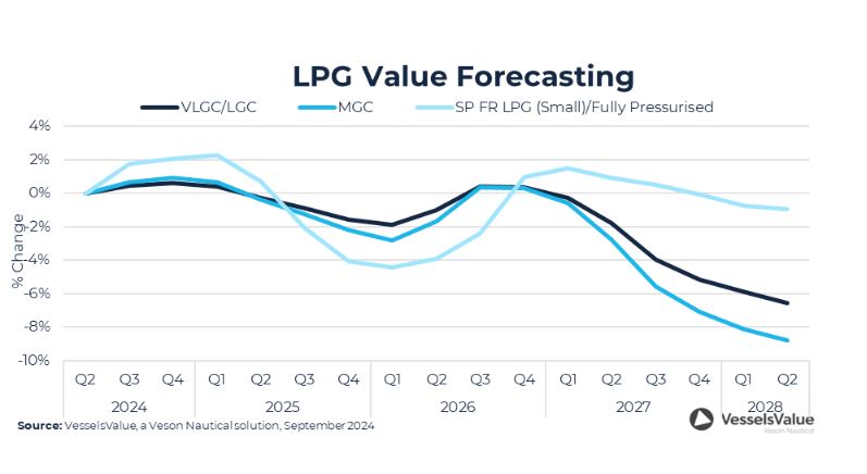 Οι παίκτες της αγοράς εξακολουθούν να παραγγέλνουν πλοία VLAC και το βιβλίο παραγγελιών έχει φτάσει τα 51 πλοία με αρκετά να αναμένεται να παραδοθούν το 2026 και το 2027. Ωστόσο, δεν αναμένουμε ότι αυτά τα πλοία θα εμπορεύονται αμμωνία τα πρώτα χρόνια, αλλά μάλλον υγραέριο μέχρι τα εν εξελίξει έργα μπλε και πράσινης αμμωνίας να φτάσουν σε επαρκείς ποσότητες.