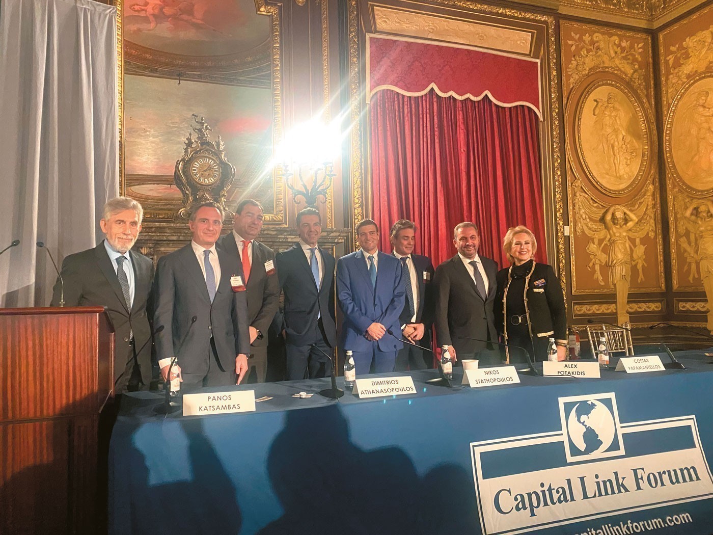 Την ευκαιρία σε όλους αυτούς τους ανθρώπους να βρεθούν, να ανταλλάξουν απόψεις και να ξετυλίξουν σκέψεις και σχέδια έδωσε η Capital Link του Νικόλα και της Ολγας Μπορνόζη, οι οποίοι, σε συνεργασία με το Χρηματιστήριο της Νέας Υόρκης, το Χρηματιστήριο Αθηνών και μεγάλες επενδυτικές τράπεζες, διοργάνωσαν με άριστο συντονισμό ένα συνέδριο-συνώνυμο μιας άτυπης Συνόδου Κορυφής για την Οικονομία.