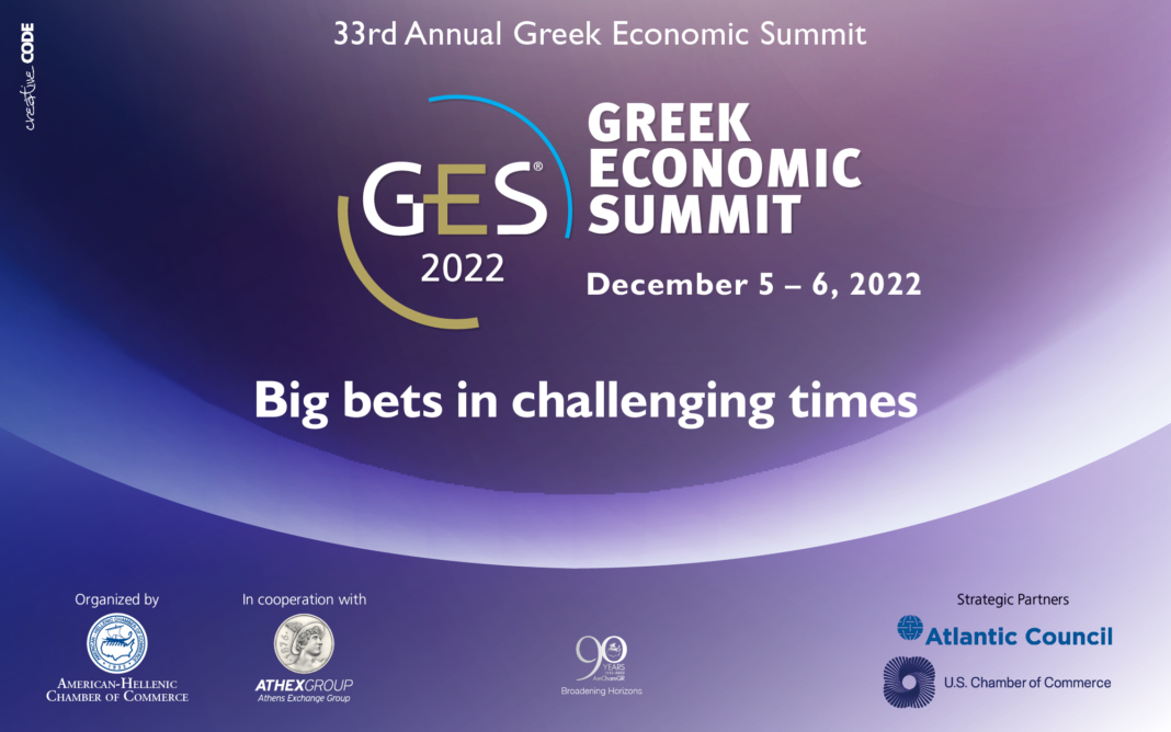 Το Ελληνο-Αμερικανικό Εμπορικό Επιμελητήριο διοργανώνει το “33ο Greek Economic Summit” στις 5 και 6 Δεκεμβρίου σε συνεργασία με το Χρηματιστήριο Αθηνών, με τη στρατηγική υποστήριξη του US Chamber of Commerce και του Atlantic Council.