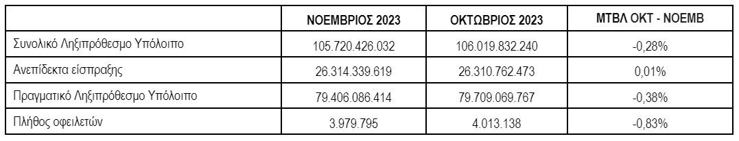 Στοιχεία ληξιπρόθεσμων οφειλών Νοεμβρίου 2023:
