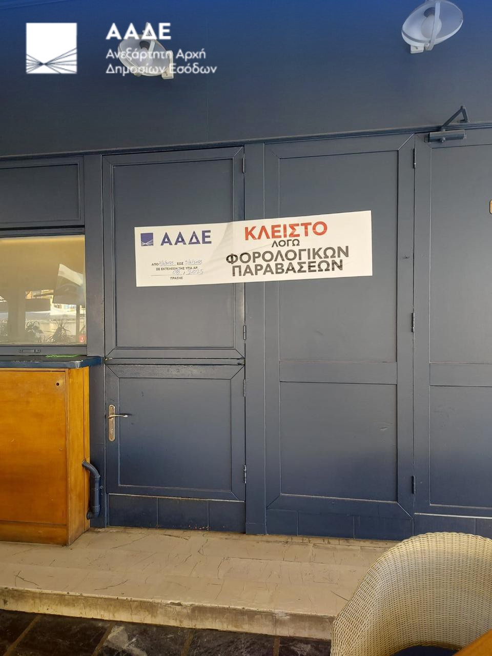 Εντοπίστηκαν 3.120 επιχειρήσεις με φορολογικές παραβάσεις, και σε 87 εξ αυτών, κυρίως από τον χώρο της εστίασης, επιβλήθηκε η αναστολή λειτουργίας 48 ή και περισσότερων ωρών. Επιπλέον, υπήρξαν 173 περιπτώσεις μη διασύνδεσης POS – ταμειακών, με συνολικό ύψος προστίμων 2.310.500 €.