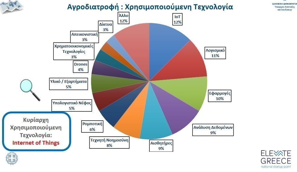 Οι νεοφυείς επιχειρήσεις αγροδιατροφής καταλαμβάνουν την τέταρτη θέση, από άποψη πληθυσμού, στο Εθνικό Μητρώο – Elevate Greece και στόχος του υπουργείου Ανάπτυξης και Επενδύσεων είναι να συνδεθεί, πιο αποτελεσματικά, η γεωργική οικονομία και η παραγωγή με την έρευνα και την επιχειρηματικότητα, σε συνδυασμό με τη χρήση των νέων καινοτόμων τεχνολογιών.