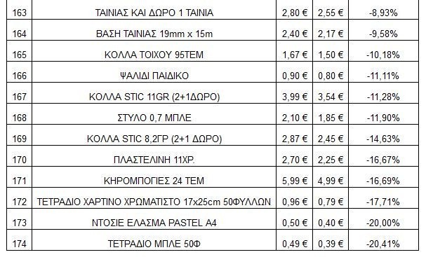 Οι μειώσεις στις τιμές των σχολικών κυμαίνονται από 0,37% έως 20,41%