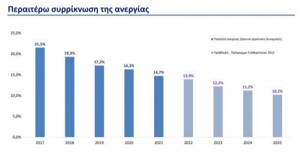 Παράλληλα η κυβέρνηση εκτιμά πως θα συνεχιστεί η αποκλιμάκωση της ανεργίας ώστε από 13,9% φέτος να μειωθεί στο 12,2% του χρόνου, στο 11,2% το 2024 και στο 10,2% το 2025.