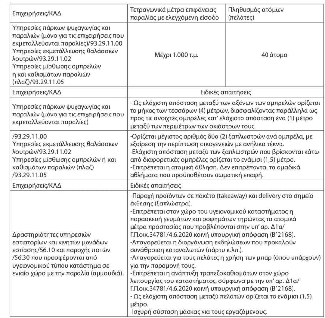 Η απόφαση δημοσιεύτηκε στο Φύλλο της Εφημερίδας της Κυβερνήσεως χθες και καθορίζει επίσης τους κανόνες λειτουργίας των επιχειρήσεων που βρίσκονται σε οργανωμένες και μη παραλίες, τις κυρώσεις σε περίπτωση παραβίασης τους καθώς και τις διαδικασίες ελέγχων.