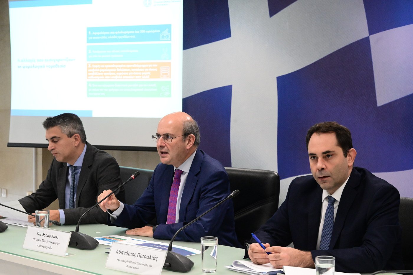 Τις τέσσερις μεγάλες αλλαγές που φέρνει το νέο φορολογικό νομοσχέδιο που θα ενσωματώνει και νέες φοροελαφρύνσεις που εξαγγέλθηκαν από τον πρωθυπουργό στη ΔΕΘ παρουσίασε το μεσημέρι της Τρίτης 15/10, ο υπουργός Εθνικής Οικονομίας και Οικονομικών, Κωστής Χατζηδάκης μαζί με τους Υφυπουργούς Χρίστο Δήμα και Θάνο Πετραλιά.