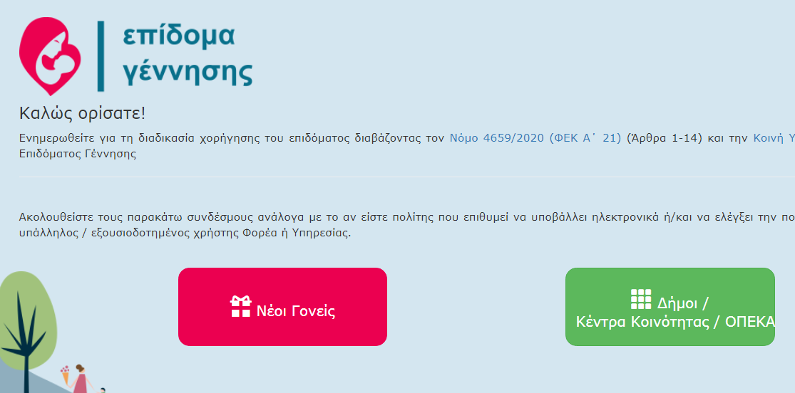 Ξεκίνησε σήμερα στην νέα πλατφόρμα epidomagennisis.gr, η υποβολή των αιτήσεων από όσες μητέρες απέκτησαν παιδιά από 1.1.2020 προκειμένου να τους χορηγηθεί επίδομα ύψους 2.000 ευρώ μέσω του ΟΠΕΚΑ.