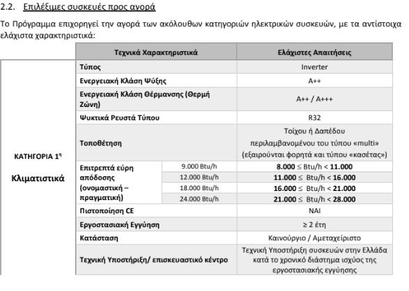 • κλιματιστικού (κατηγορία 1) προς αντικατάσταση παλαιού κλιματιστικού,