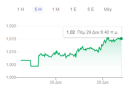 Η ισοτιμία ελβετικού φράγκου/ευρώ βρισκόταν σήμερα το πρωί στο 1,02.