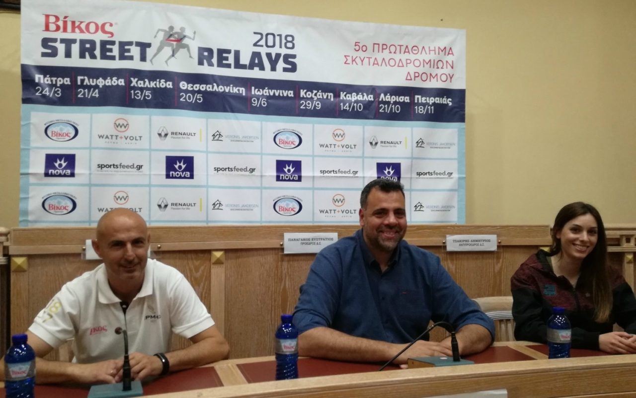 Η Βίκος, η κορυφαία ελληνική βιομηχανία νερών και αναψυκτικών, είναι ο ονομαστικός χορηγός των Street Relays ενώ Μεγάλος Χορηγός είναι η εταιρεία παροχής ολοκληρωμένων υπηρεσιών Ηλεκτρικής Ενέργειας WATT+VOLT. Η μεγάλη ευρωπαϊκή αυτοκινητοβιομηχανία Renault και πολυβραβευμένη για την κοινωνική της προσφορά είναι Επίσημος Χορηγός, ενώ στο αγώνισμα των 10 χιλιομέτρων Επίσημος Χορηγός είναι η μεγάλη κατασκευαστική εταιρεία Veronis Jakobsen. Στους Μεγάλους Υποστηρικτές των Βίκος Street Relays είναι η ανερχόμενη ελληνική εταιρεία παιδικής ένδυσης Domina Sport, που είναι ο Επίσημος Χορηγός των Kids Relays, η μεγαλύτερη αλυσίδα καταστημάτων αθλητικής ένδυσης και υπόδησης σε όλη την Ελλάδα, Ιntersport, η εταιρεία γαλακτοκομικών προϊόντων Arla Foods και η εταιρεία Counterpain που με τη μοναδικής αποτελεσματικότητας αναλγητική κρέμα φυτικής προέλευσης, ανακουφίζει όλο το σώμα από μυϊκούς πόνους. Επίσημος Υποστηρικτής είναι τα καταστήματα συμπληρωμάτων διατροφής Xtreme Stores, ενώ σημαντική είναι και η βοήθεια της Eldico που με το αθλητικό υλικό της Amila βοηθάει να εξοπλίσουμε τα σχολεία της πόλης.