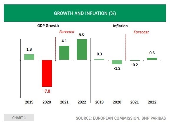 Η ελληνική οικονομία αποδεικνύεται ανθεκτική, με την ανάκαμψη στο πρώτο τρίμηνο του 2021 να είναι ταχύτερη από ό,τι στις περισσότερες χώρες της Ευρωζώνης, επισημαίνει σε νέα έκθεσή της η BNP Paribas.