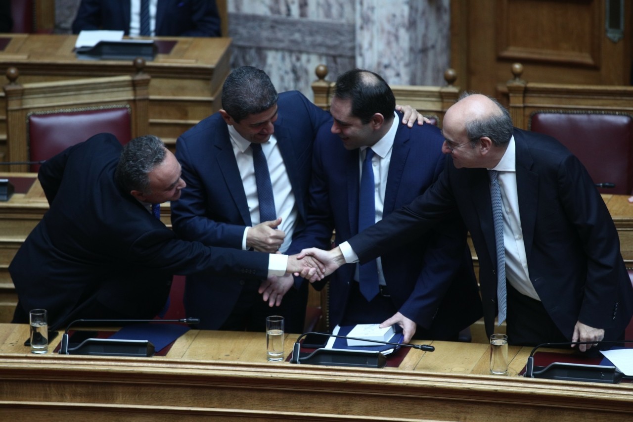 Ο Υπουργός Εθνικής Οικονομίας και Οικονομικών, Κωστής Χατζηδάκης, συνοδευόμενος από τον Υφυπουργό Εθνικής Οικονομίας και Οικονομικών, Αθανάσιο Πετραλιά, κατέθεσε σήμερα στη Βουλή τον Κρατικό Προϋπολογισμό για το 2024.