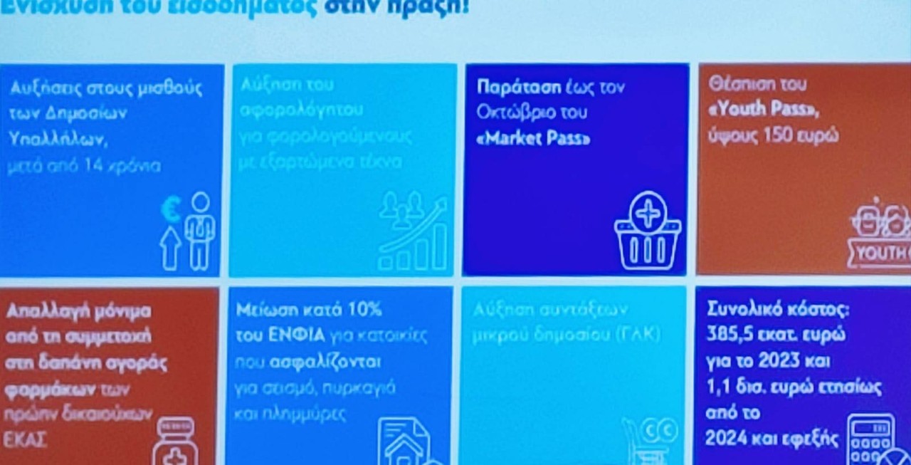 Τα νέα μέτρα που περιλαμβάνει το πολυνομοσχέδιο που καταθέτει σήμερα σε δημόσια διαβούλευση παρουσιάζει αυτή την ώρα ο υπουργός Οικονομικών Κωστής Χατζηδάκης. Μεταξύ άλλων, ανακοινώθηκε η παράταση του market pass για τρεις μήνες, δηλαδή μέχρι τον Οκτώβριο του 2023.