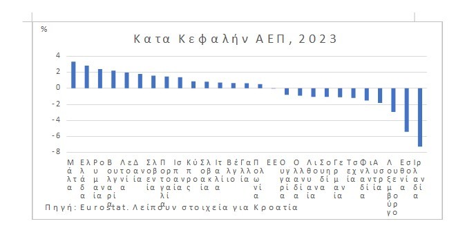 6. Αναθεωρήθηκε προς τα πάνω η ανάπτυξη του κατά κεφαλήν ΑΕΠ για το διάστημα 2022-23 στο 2,8% από 2,5%, η δεύτερη καλύτερη επίδοση στην ΕΕ-27. Η σωρευτική ανάπτυξη του κατά κεφαλήν πραγματικού ΑΕΠ αναθεωρήθηκε προς τα πάνω στο 8,7% από 7,8% για το διάστημα 2019-23.