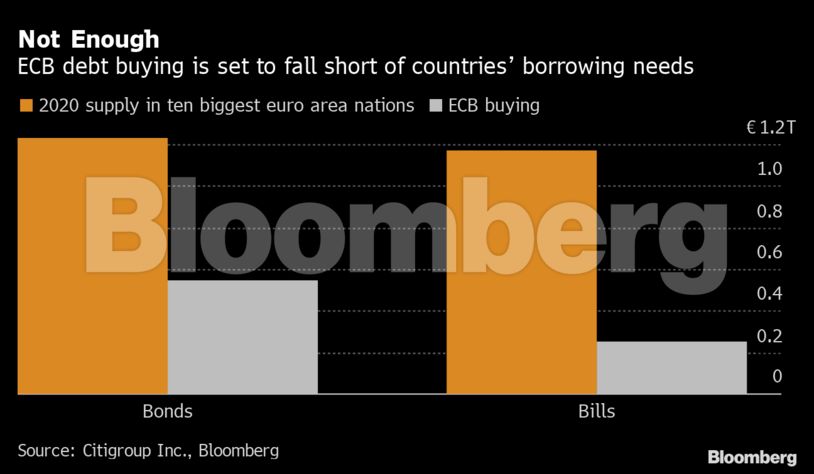 Το Bloomberg Intelligence εκτιμά ότι τα κράτη της ζώνης του ευρώ θα πρέπει να πουλήσουν τουλάχιστον 1,2 τρισεκατομμύρια ευρώ ομολόγων φέτος, αλλά ο αριθμός αυτός ενδέχεται να αυξηθεί.