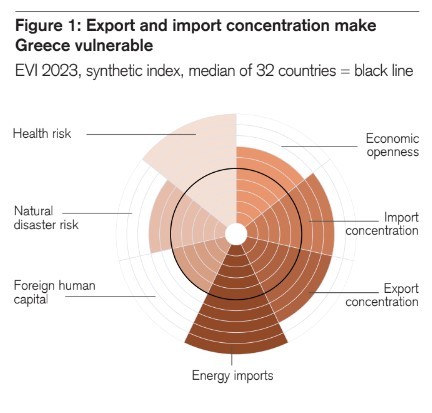 Δυστυχώς, η Ελλάδα έχει επιδόσεις κάτω από το μέσο όρο και στους έντεκα επιμέρους δείκτες της του ERI, καθιστώντας τη χώρα ακόμη πιο εκτεθειμένη σε εξωτερικούς κλυδωνισμούς.