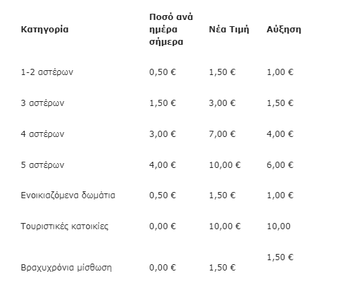 –Καταργείται ο φόρος διαμονής ο οποίος επιβάλλεται σήμερα σε ξενοδοχεία και ενοικιαζόμενα δωμάτια και αντικαθίσταται από το «τέλος ανθεκτικότητας στην κλιματική κρίση» το οποίο θα επιβαρύνει επιπλέον και τις βραχυχρόνιες μισθώσεις με 1,5 ευρώ την ημέρα.