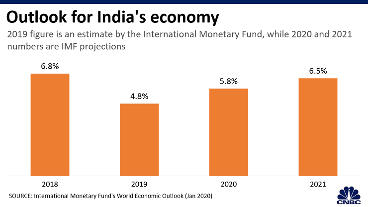 Η τρίτη μεγαλύτερη οικονομία της Ασίας αναμένεται να έχει ανάπτυξη 5,8% το 2020 – 1,2% κάτω από την προηγούμενη πρόβλεψη του Οκτωβρίου.