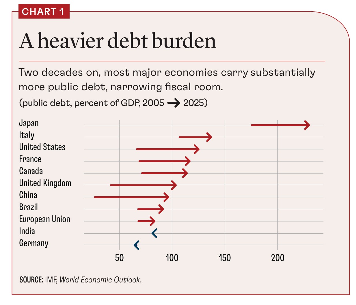 «Η δημοσιονομική πολιτική ανέκαθεν περιλάμβανε συμβιβασμούς» ξεκαθαρίζουν. «Μέχρι πρόσφατα, οι κυβερνήσεις μπορούσαν να αναβάλουν αυτές τις επιλογές δανειζόμενες με βολικούς όρους. Αλλά τώρα, τα πρωτοφανή επίπεδα χρέους και το υψηλότερο κόστος δανεισμού έχουν αυξήσει τα διακυβεύματα.»