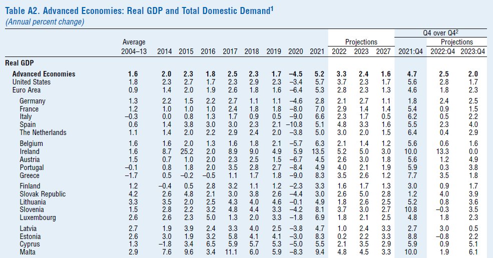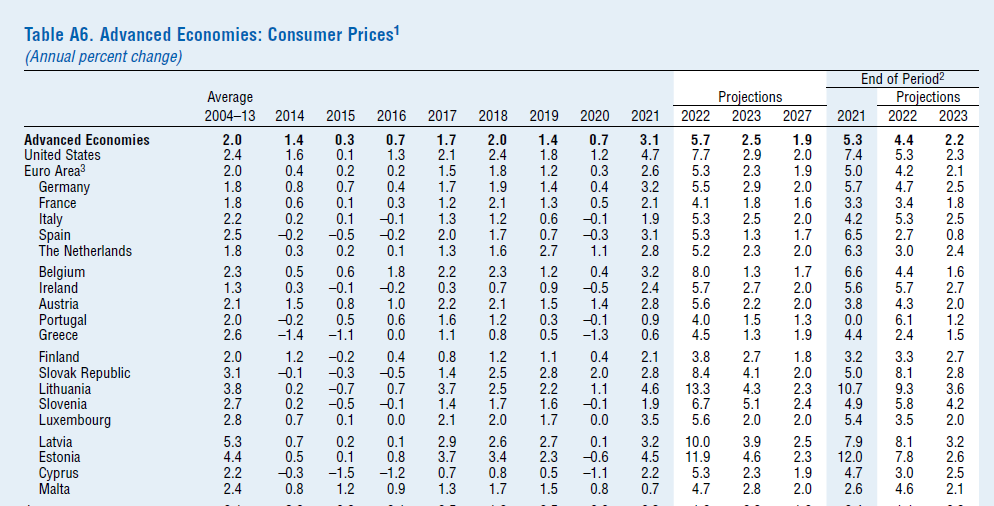 Σύμφωνα με την έκθεση του Διεθνούς Νομισματικού Ταμείου, World Economic Outlook, η οποία δόθηκε σήμερα στη δημοσιότητα στο πλαίσιο της εαρινής Συνόδου, ο πήχης της παγκόσμιας ανάπτυξης πέφτει στο 3,6% αντί 4,4%, ενώ ο μέσος πληθωρισμός αυξάνεται στο 5,7% στις ανεπτυγμένες οικονομίες.