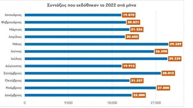 Το Νοέμβριο του 2022 οι εκδόσεις συντάξεων ξεπέρασαν τις 27.000, 10.000 περισσότερες σε σχέση με τον αντίστοιχο μήνα του 2021 (αύξηση 60%) αποδεικνύοντας πως οι υπηρεσίες του ΕΦΚΑ κρατούν σταθερά σε υψηλό επίπεδο τον ρυθμό των απονομών. Αντιστοίχως τον μήνα Δεκέμβριο οι απονομές ανήλθαν σε περίπου 22.000.