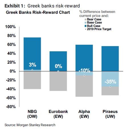 Η Morgan Stanley μετριάζει την υπερβολική αισιοδοξία της για τις προοπτικές των τραπεζικών μετοχών στην Ελλάδα.