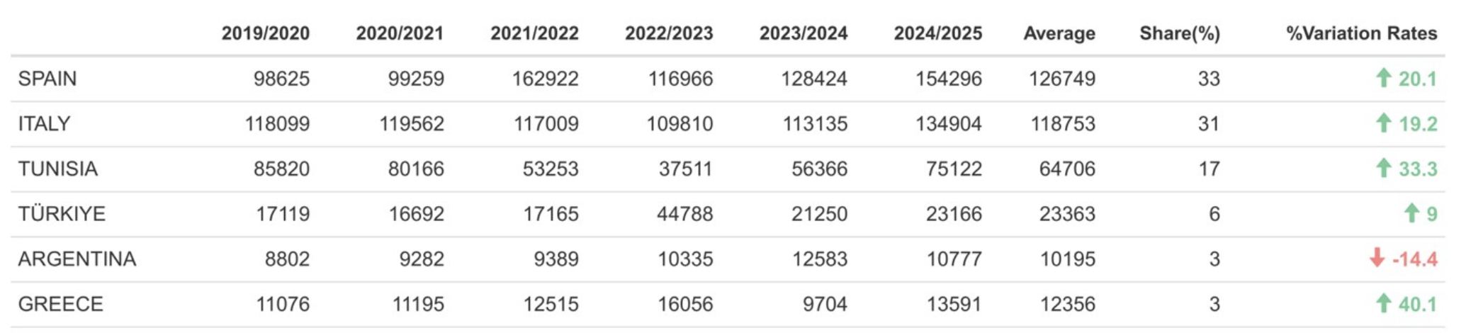 Mάλιστα σε όρους ποσοστιαίας αύξησης η Ελλάδα αναδεικνύεται πρωταθλήτρια, αφού οι εξαγωγές από την ελαιοκομική περίοδο 2023/2024 στην ελαιοκομική περίοδο 2024/2025 σημείωσαν άλμα 40%.