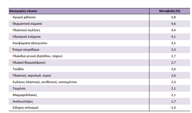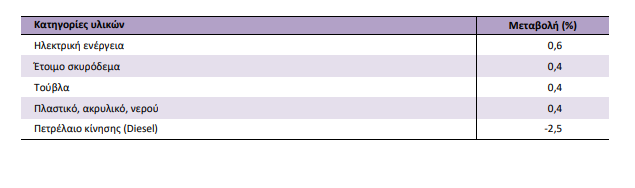 Ειδικότερα, αυξήσεις τιμών υπήρξαν σε:
