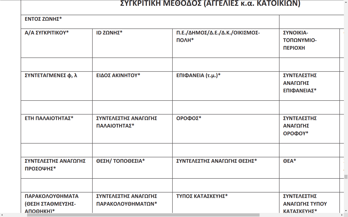 Η οδηγία που έχουν είναι να αναζητήσουν συγκριτικά στοιχεία, είτε πόρτα-πόρτα με αυτοψίες, είτε από αγγελίες ή άλλα πρόσφορα μέσα. Θα πρέπει όμως μετά να κάνουν αναγωγή όποιων στοιχείων βρουν, σε αξία για το ενδεικτικό ακίνητο αναφοράς κατοικίας και οικοπέδου. Δηλαδή:
