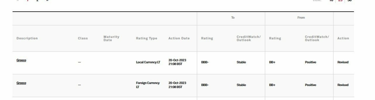 «Αναμένουμε πρόσθετες διαρθρωτικές οικονομικές και δημοσιονομικές μεταρρυθμίσεις, σε συνδυασμό με τα κονδύλια της ΕΕ, τα οποία θα στηρίξουν την ισχυρή οικονομική ανάπτυξη τα έτη 2023-2026 και θα συνδράμουν στη συνεχή μείωση του δημόσιου χρέους. Ως εκ τούτου, αναβαθμίσαμε την αξιολόγηση της πιστοληπτικής ικανότητας για την Ελλάδα σε «BBB-/A-3» από «BB+/B», με σταθερές προοπτικές».