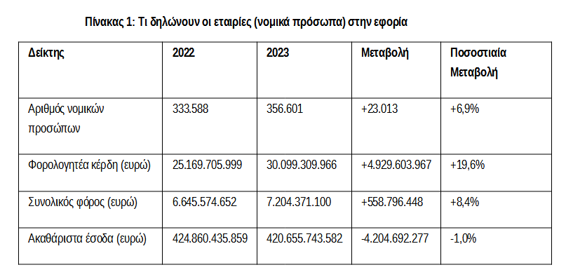 • για τα κέρδη αυτά οι εταιρίες πλήρωσαν φόρο 0,56 δισ. παραπάνω (+8,4%)