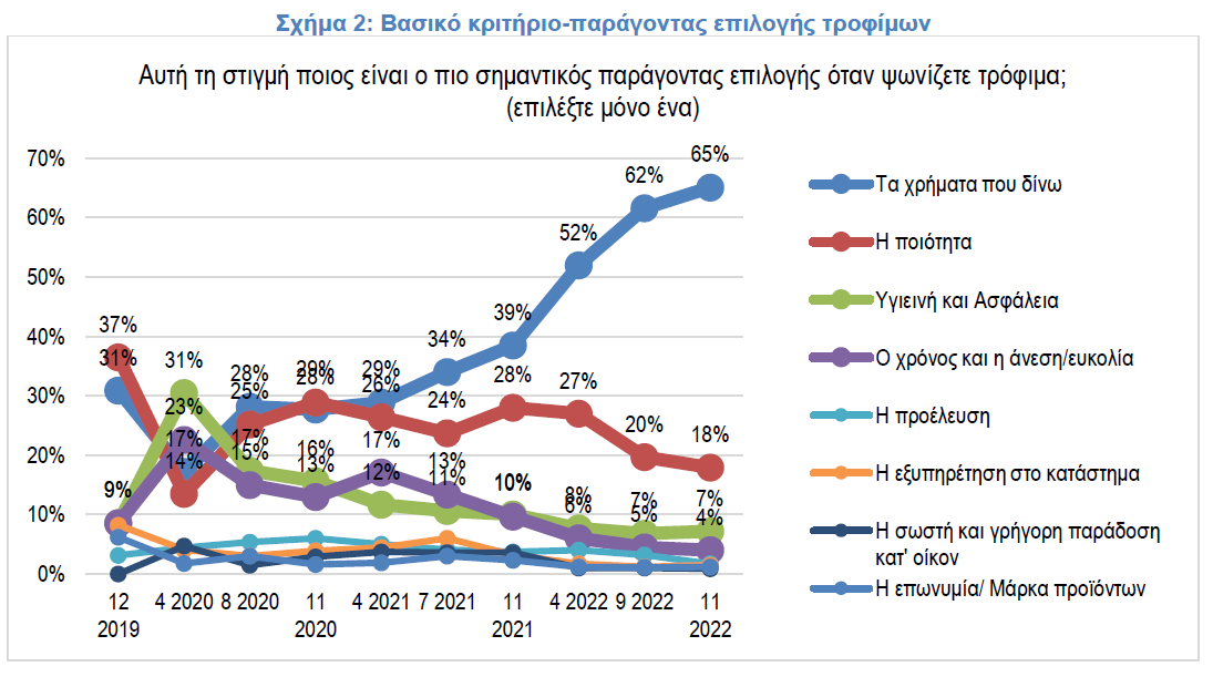 Η έρευνα πραγματοποιήθηκε με δείγμα 1.000 καταναλωτές, από τις 9 έως 11 Νοεμβρίου 2022 και αφορούσε, ανάμεσα σε άλλα θέματα, και την αντιλαμβανόμενη επίδραση των ανατιμήσεων, του πολέμου στην Ουκρανία και της πανδημίας COVID-19, στις καταναλωτικές συνήθειες στην Ελλάδα.