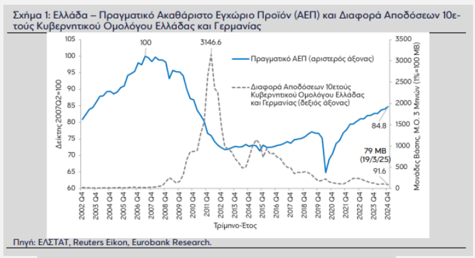 Τις τελευταίες δύο εβδομάδες, οι ανακοινώσεις, πρώτον, της Ελληνικής Στατιστικής Αρχής (ΕΛΣΤΑΤ) για τον πραγματικό ρυθμό μεγέθυνσης της ελληνικής οικονομίας το 2024 (7 Μαρ-25) και δεύτερον, του οίκου Moody’s για την πιστοληπτική διαβάθμιση του ελληνικού αξιόχρεου (14 Μαρ-25), ανέδειξαν: (α) τη διατήρηση της ελληνικής οικονομίας σε φάση ανάκαμψης με ικανοποιητικό ρυθμό μεγέθυνσης και (β) την ενίσχυση της ανθεκτικότητας του πιστωτικού προφίλ της έναντι πιθανών μελλοντικών διαταραχών.