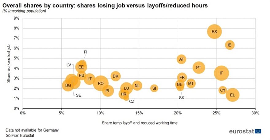 Η Ελλάδα αναδεικνύεται ως μία από τις αποτελεσματικότερες χώρες στην Ευρώπη στην προστασία των θέσεων εργασίας κατά την περίοδο των καθολικών lockdowns, την περασμένη άνοιξη, σύμφωνα με πειραματική έρευνα που διενήργησε η Eurostat.