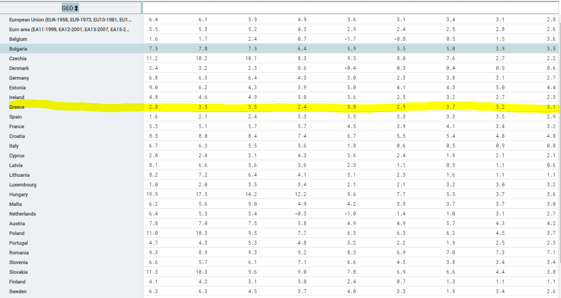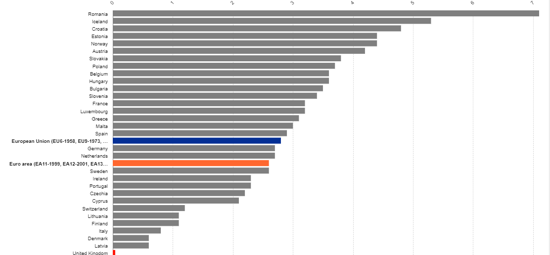 Τα υψηλότερα ποσοστά καταγράφηκαν στη Ρουμανία (7,1%), στην Κροατία (4,8%) και στην Εσθονία (4,4%).