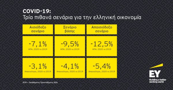 Έκθεση με τις εκτιμήσεις της για τις οικονομικές επιπτώσεις του COVID-19 ανά κλάδο της ελληνικής οικονομίας, με βάση τρία πιθανά σενάρια, παρουσιάζει η ΕΥ Ελλάδος.