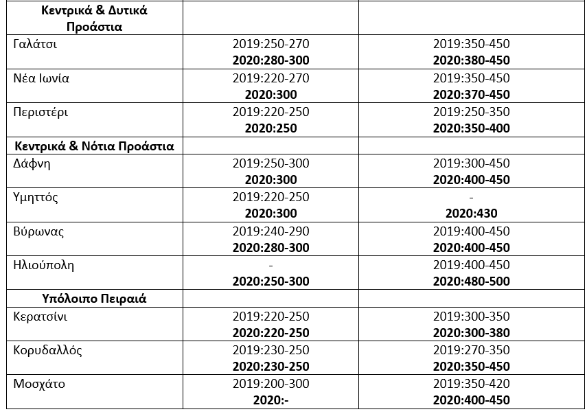 Εξαίρεση στο ράλι των τιμών καταγράφεται στη Ξάνθη, στα Ιωάννινα, στον Πύργο, στη Σητεία – Ιεράπετρα, στη Σπάρτη, στη Καρδίτσα, στη Καβάλα και στη Φλώρινα. Οι τιμές στις άνωθεν περιοχές παραμένουν σταθερές ή/και καταγράφουν μικρές απώλειες στην ανώτατη ζητούμενη τιμή.