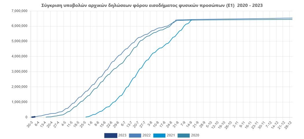 Την Παρασκευή 31 Mαρτίου 2023 άνοιξε η ηλεκτρονική πλατφόρμα του Taxisnet για την υποβολή των φορολογικών δηλώσεων 2023, όπου θα περιλαμβάνονται τα εισοδήματα που εισέπραξαν οι πολίτες μέσα στο 2022.