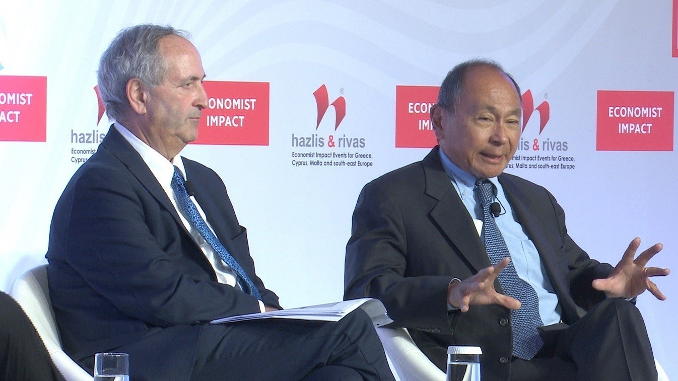 Νωρίτερα, ο Φ. Φουκουγιάμα μετείχε σε πάνελ με τον πρόεδρο και διευθύνοντα σύμβουλο της MYTILINEOS, Ε. Μυτιληναίο, όπου σημείωσε ότι «αυτός ο πόλεμος δεν είναι για την Ουκρανία και την επέκταση του ΝΑΤΟ αλλά για ολόκληρη την ευρωπαϊκή τάξη πραγμάτων».