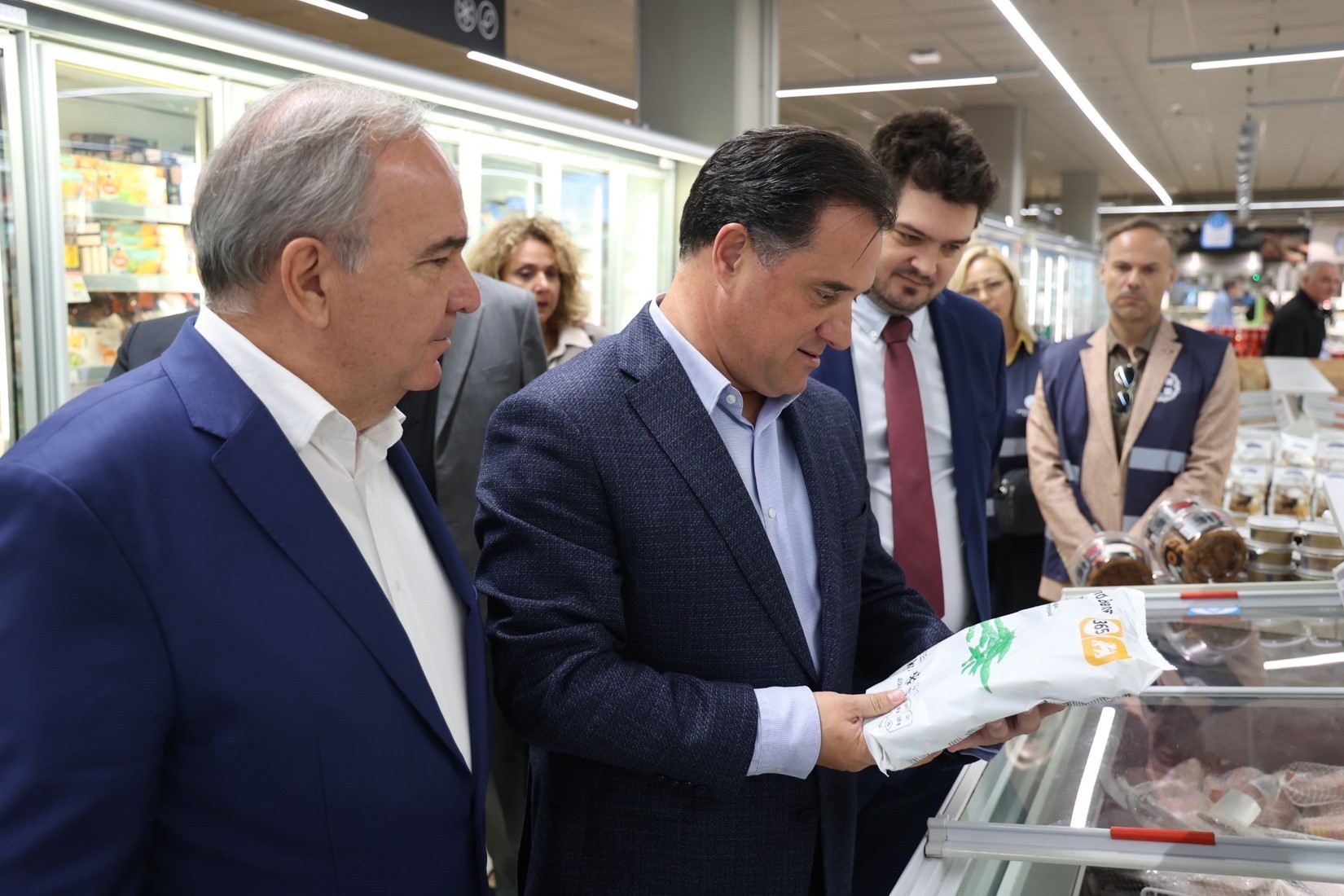Ο Υπουργός Ανάπτυξης & Επενδύσεων, κ. Άδωνις Γεωργιάδης, ο Αναπληρωτής Υπουργός, κ. Νίκος Παπαθανάσης, ο Γενικός Γραμματέας Εμπορίου και Προστασίας του Καταναλωτή, κ. Σωτήρης Αναγνωστόπουλος, ο Διοικητής της Διϋπηρεσιακής Μονάδας Ελέγχου της Αγοράς (ΔΙΜΕΑ), κ. Χαράλαμπος Μελισσινός και ελεγκτές της ΔΙΜΕΑ επισκέφθηκαν σήμερα (2/11) πρώτη μέρα εφαρμογής του μέτρου για το «καλάθι του νοικοκυριού», καταστήματα στην Αττική 9 αλυσίδων σούπερ μάρκετ.