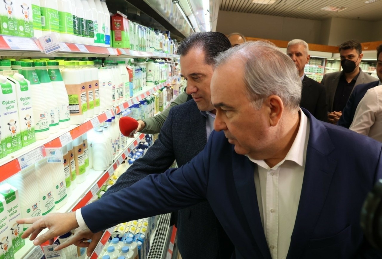 Ο Υπουργός Ανάπτυξης & Επενδύσεων, κ. Άδωνις Γεωργιάδης, ο Αναπληρωτής Υπουργός, κ. Νίκος Παπαθανάσης, ο Γενικός Γραμματέας Εμπορίου και Προστασίας του Καταναλωτή, κ. Σωτήρης Αναγνωστόπουλος, ο Διοικητής της Διϋπηρεσιακής Μονάδας Ελέγχου της Αγοράς (ΔΙΜΕΑ), κ. Χαράλαμπος Μελισσινός και ελεγκτές της ΔΙΜΕΑ επισκέφθηκαν σήμερα (2/11) πρώτη μέρα εφαρμογής του μέτρου για το «καλάθι του νοικοκυριού», καταστήματα στην Αττική 9 αλυσίδων σούπερ μάρκετ.