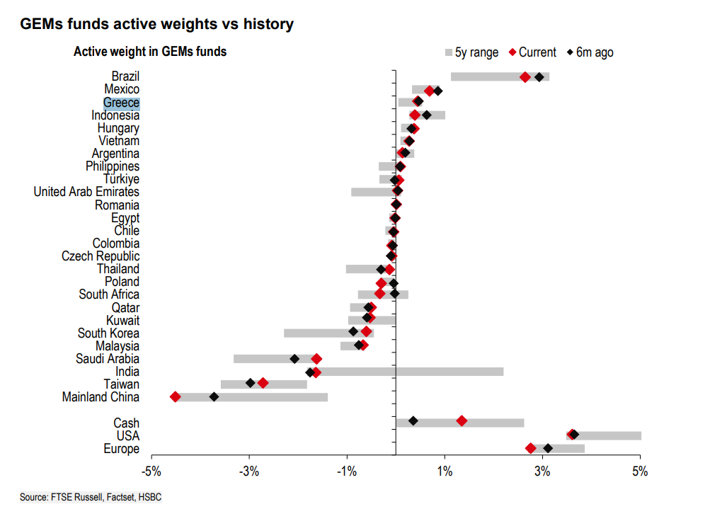 Η ανησυχία της HSBC εντείνεται από τη σημερινή εικόνα τοποθετήσεων. Περίπου 60% των funds αναδυόμενων αγορών έχουν σήμερα έκθεση στην Ελλάδα, έναντι μόλις 7% των global funds. Η αναλογία αυτή υποδηλώνει ότι η χώρα είναι ήδη «γεμάτη» σε όρους αναδυόμενων αγορών, αλλά παραμένει σχεδόν αόρατη για τα μεγάλα διεθνή χαρτοφυλάκια αναπτυγμένων αγορών. Σε περίπτωση αλλαγής κατηγορίας, το ρίσκο δεν είναι απλώς η έξοδος κεφαλαίων, αλλά το ενδεχόμενο η Ελλάδα να βρεθεί σε μια επενδυτική ενδιάμεση ζώνη, χωρίς επαρκές ενδιαφέρον ούτε από EM ούτε από DM επενδυτές.