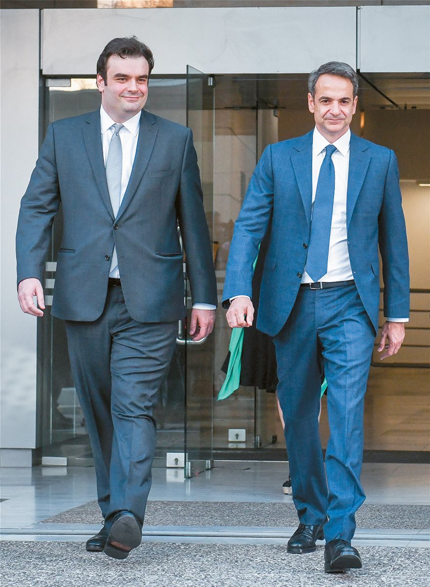 Ο πρωθυπουργός Κυριάκος Μητσοτάκης με τον υπουργό Ψηφιακής Διακυβέρνησης Κυριάκο Πιερρακάκη. Η κυβέρνηση προέτρεψε τους παρόχους κινητής τηλεφωνίας να επανεξετάσουν τις χρεώσεις στα δεδομένα. Στο Μέγαρο Μαξίμου υπάρχει εδραιωμένη και βάσιμη εκτίμηση ότι χωρίς να υπάρξει οικονομική επιβάρυνση ούτε για τις εταιρείες ούτε για τους πελάτες είναι δυνατή η αύξηση της χρήσης των data τουλάχιστον κατά 50%