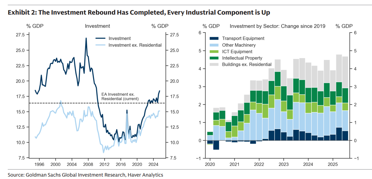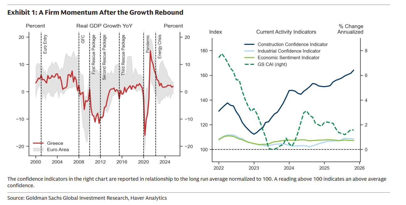 Το βασικό συμπέρασμα της Goldman Sachs είναι ότι η Ελλάδα έχει πλέον ενισχύσει το υπόδειγμα ανάπτυξής της σε βαθμό που ακόμη και τρεις παράγοντες με δυνητικά αρνητικό πρόσημο δεν αρκούν για να «γυρίσουν το καράβι». Η αναπτυξιακή ορμή διατηρείται, οι διαρθρωτικοί δείκτες παραμένουν θετικοί και η επενδυτική δραστηριότητα συνεχίζει να λειτουργεί σαν ασπίδα απέναντι στους εξωτερικούς κινδύνους. Σε ένα περιβάλλον όπου η Ευρωζώνη θα κινηθεί σε χαμηλούς ρυθμούς, η Ελλάδα εξακολουθεί να εμφανίζεται ως μία από τις λίγες πραγματικά φωτεινές εξαιρέσεις.