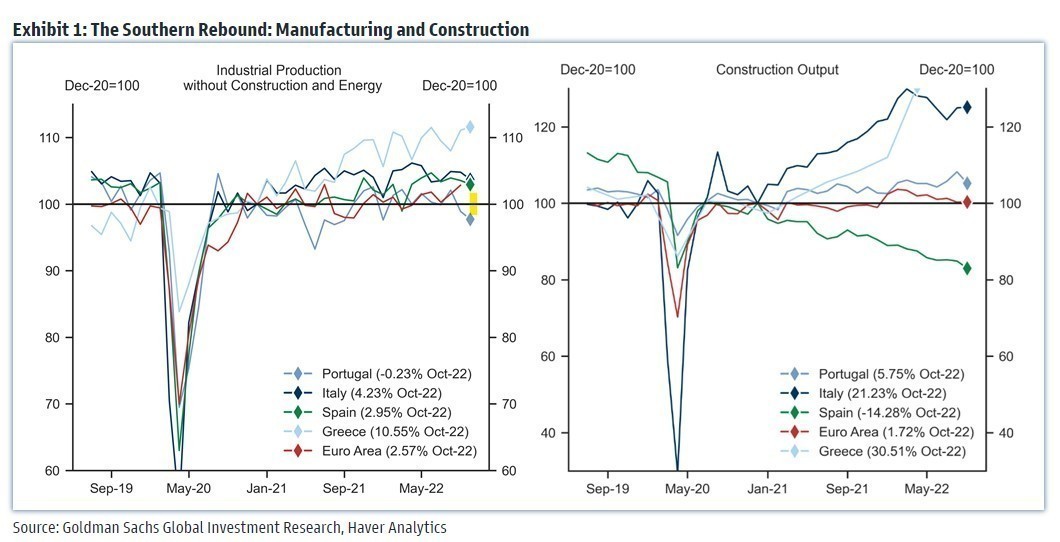 «Η συνεχιζόμενη πολιτική υποστήριξη για ένα μείγμα πολιτικής εστιασμένο στις επενδύσεις στη Νότια Ευρώπη παραμένει ζωτικής σημασίας. Μετά την Πορτογαλία και την Ιταλία το 2022, το επόμενο έτος θα διεξαχθούν γενικές εκλογές στην Ελλάδα και την Ισπανία. Ωστόσο, παρόμοια με το τρέχον έτος, όταν οι πολιτικές εκλογές δεν προκάλεσαν καμία (Πορτογαλία) έως περιορισμένη (Ιταλία) διαταραχή στην απορρόφηση των ευρωπαϊκών δημοσιονομικών προγραμμάτων, τόσο η Ελλάδα όσο και η Ισπανία φαίνονται σε καλή θέση να εφαρμόσουν δημοσιονομική στήριξη με κατεύθυνση τις επενδύσεις, η οποία θα μπορούσε να φθάσει περίπου το 3% του ΑΕΠ το 2023. Στην Ελλάδα, το κόμμα του πρωθυπουργού, με τη δέσμευσή του προς το Ταμείο Ανάκαμψης, κατέχει σημαντικό προβάδισμα στις δημοσκοπήσεις. Στην Ισπανία, τα δύο κορυφαία κόμματα (PSOE και PP) στον ανταγωνισμό μοιράζονται παρόμοια υποστήριξη για τα ευρωπαϊκά προγράμματα», επισημαίνει η αμερικανική επενδυτική τράπεζα.