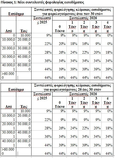 Για τους νέους έως 25 ετών oι συντελεστές από 0 έως 20.000 ευρώ μηδενίζονται.