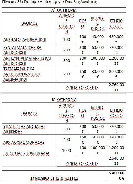 Παράρτημα 2: Νέο Μισθολόγιο Στελεχών των Ενόπλων Δυνάμεων, της Ελληνικής Αστυνομίας, του Πυροσβεστικού και του Λιμενικού Σώματος-Ελληνικής Ακτοφυλακής