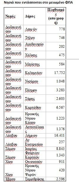 Νησιά που εντάσσονται στο μειωμένο ΦΠΑ